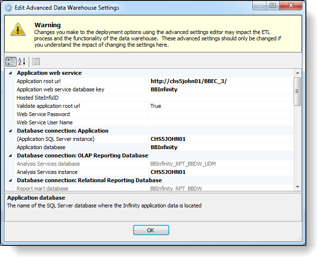 To edit additional settings, click Edit advanced settings. The Edit Advanced Data Warehouse Settings screen appears.