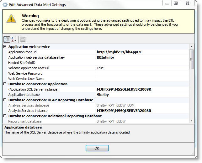In the OLAP Database field, the name appears for the database that contains the OLAP cubes for the data warehouse. You cannot edit this name.