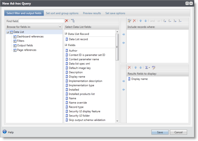 In addition to creating these pages, we have also created new ad-hoc query views to allow querying over our platform feature metadata. You can now create queries of data forms, data lists, record operations, smart fields, etc. and use the full power of our query tool semantics to mine the features in the system.