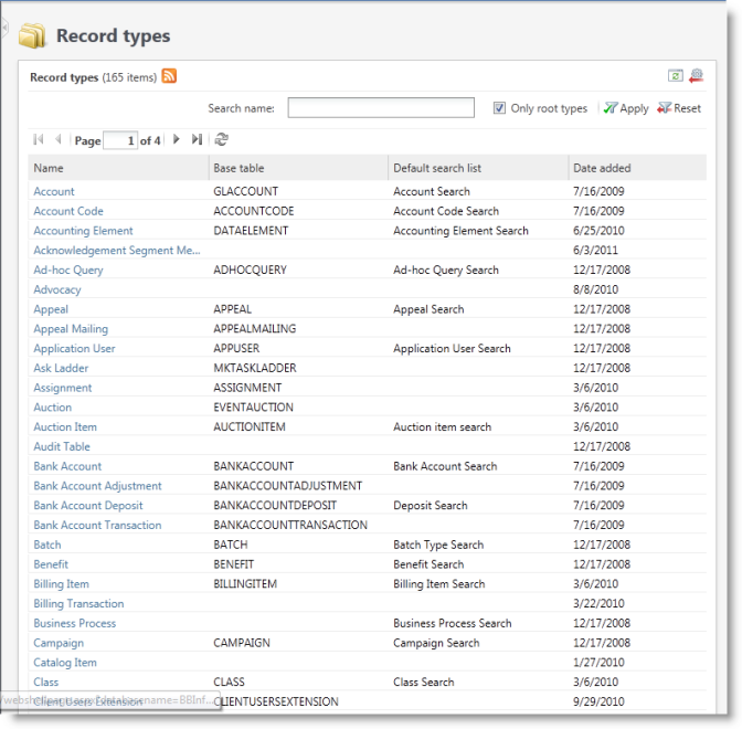 The first three tasks under Record types allow you to see groups of features from a macro perspective. With the tasks in the Record types group, you can really get an idea of the scale and scope of a particular record type. You can search for a record type, view the list of record types (usually the "root" record types), or view a list of newly added record types.