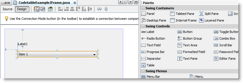 Step 3 - Add a jLabel and jComboBox to the JFrame.