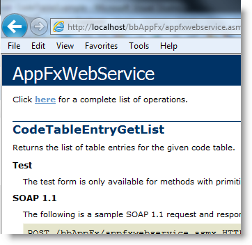 public CodeTableExampleJFrame() { initComponents(); _clientAppInfoHeader.setREDatabaseToUse("BBInfinity"); req.setCodeTableName("ADDRESSTYPECODE"); req.setClientAppInfo(_clientAppInfoHeader); reply = _appFxWebService.getAppFxWebServiceSoap12().codeTableEntryGetList(req); jComboBoxAddressType.removeAllItems(); for (int i = 0; i < reply.getRows().getR().size(); i++){ jComboBoxAddressType.addItem(reply.getRows().getR().get(i).getCode()); }Note: You can also specify other options. See the following snippet from the Endpoint Reference.