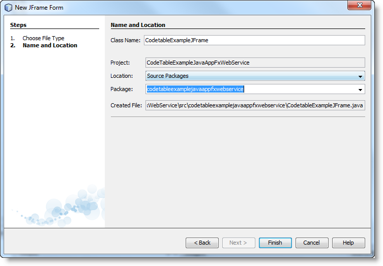 The entire code sample can be found here: CodeTableExampleJavaAppFxWebService.zip