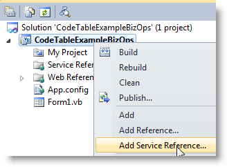Public Class Form1 Private _codeTableService As AddressTypeCodeTableService.CodeTableService Private _myCred As System.Net.ICredentials Private Sub InitializeCodeTableService() _myCred = GetNetworkCredentials() _codeTableService = New AddressTypeCodeTableService.CodeTableService _codeTableService.Credentials = _myCred End Sub ...