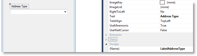 Add text to the label. In this case, the combo box will support selecting an Address Type.