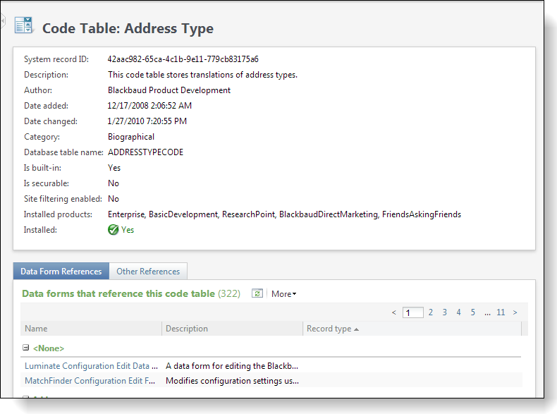 Private Sub Form1_Load(ByVal sender As System.Object, ByVal e As System.EventArgs) Handles MyBase.Load InitializeCodeTableService() Dim req = New AddressTypeCodeTableService.GetTableEntryListRequest() Dim reply = New AddressTypeCodeTableService.GetTableEntryListReply() reply = _codeTableService.GetTableEntryList(req) For Each row In reply.Rows ComboBoxAddressType.Items.Add(row.Description) Next End SubYou can include additional information in the request. See the following snippet from the Endpoint Reference: