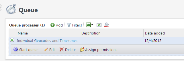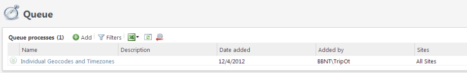 Click the Save button to save the queue process and return to the Queue page. You should see your new queue process within the data list.