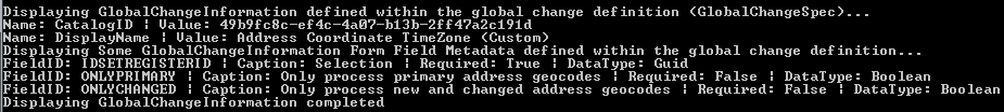 Console.WriteLine("Displaying GlobalChangeInformation completed");