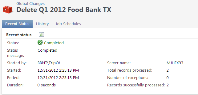 Tip: When a global change starts, a row is added to the GlobalChangeStatus and table BusinessProcessStatus tables. For details, see Global Change Tables.