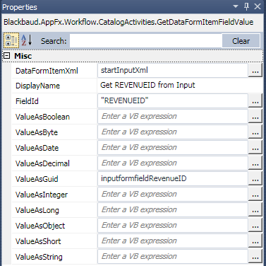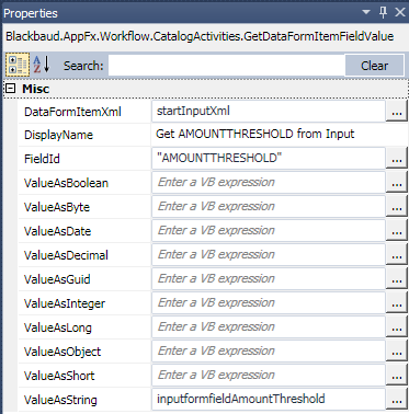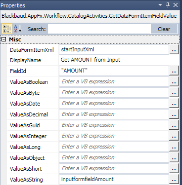 Provide the following properties for each GetDataFormItemFieldValue activity: