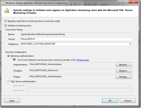 Figure: Windows Server AppFabric Monitoring Store Configuration