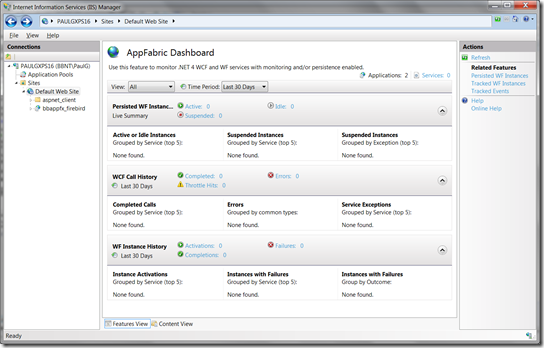 To verify that your AppFabric dashboard has no errors for the root of your website, run Internet Information Services (IIS) Manager (inetmgr.exe).