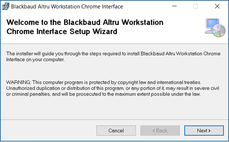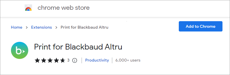 Under Workstation interface, select 1. Install the Print for Blackbaud Altru browser extension to open the chrome web store.