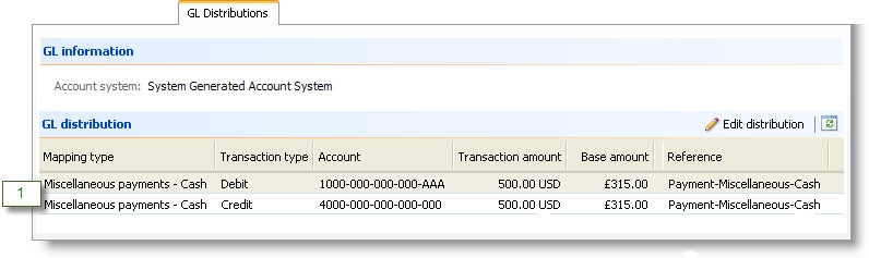 These distributions appear on the GL Distributions tab for the miscellaneous payment and the deposit.