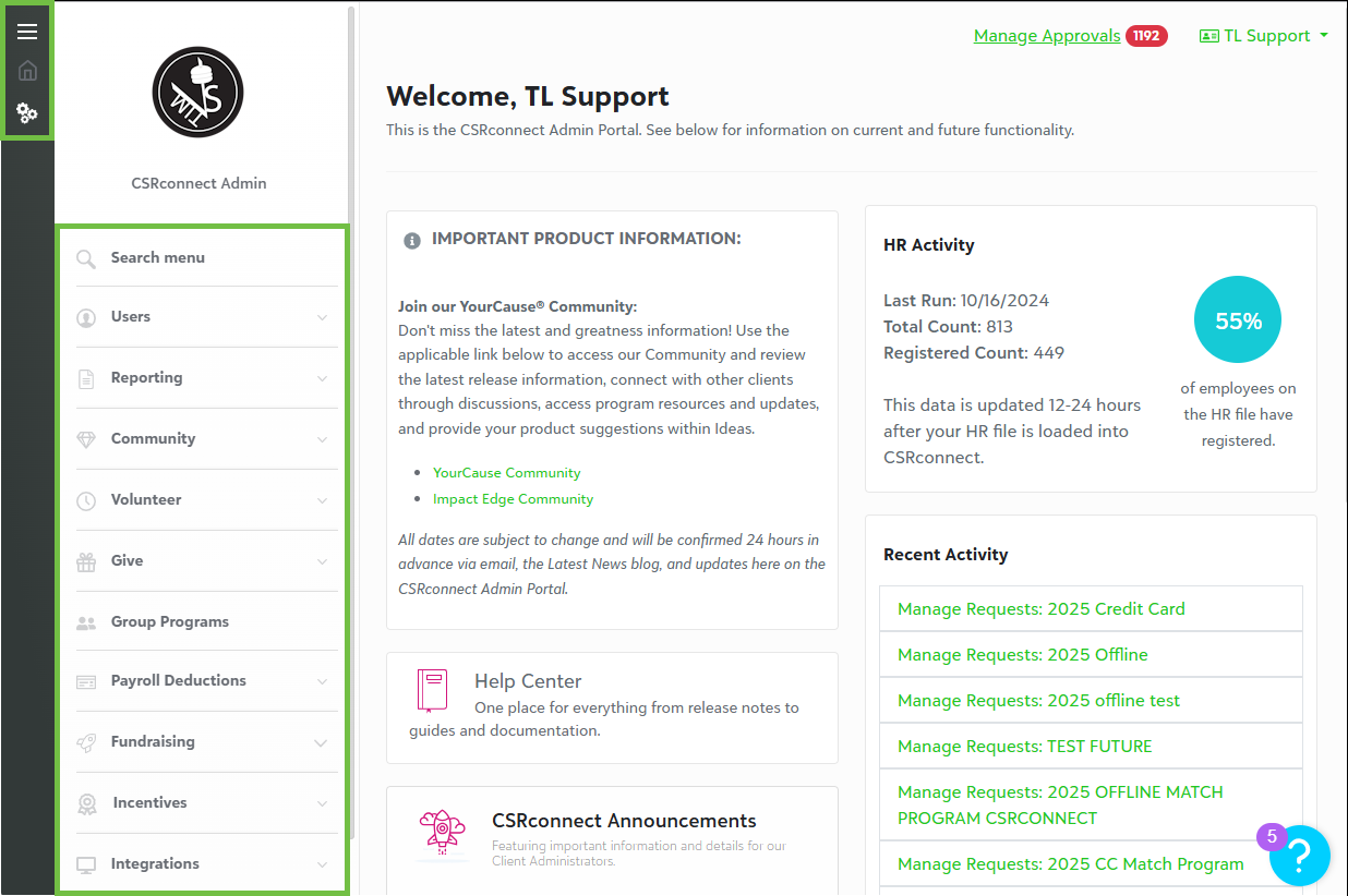 As additional pages migrate to the CSRconnect Admin Portal, we've redesigned the navigation for ease of use and streamlined functionality.