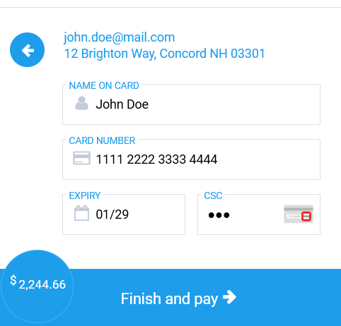 Enter your Billing credentials followed by your card or bank information. Finalize by selecting Finish and pay.