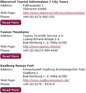 Provide contact information for local hotels, restaurants, attractions, etc. such as to create a virtual visitor's guide.