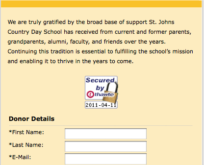 All sites must have a Thawte SSL certificate. You can add a Thawte Trusted Site Seal to your site to visually reassure constituents that your site is using SSL. This is especially useful on giving and event registration forms where constituents submit credit card data.
