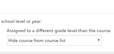 The Has already taken the course, Lacks prerequisite, and Assigned to a different grade level settings can filter course request results and enforce course requirements based on the selected options.