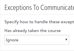 If Ignore is set for a section, then those conditions will not be applied and students will be able to freely request courses without restriction. |