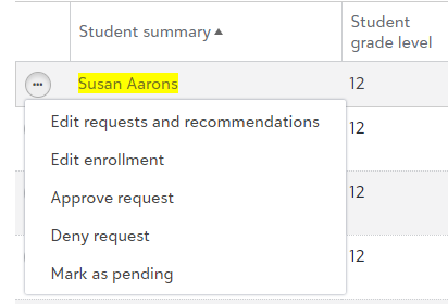 Select Approved to immediately confirm the course request for the student, though this is not necessary, because course requests marked as Pending will still be scheduled. | Step 5