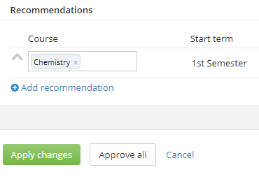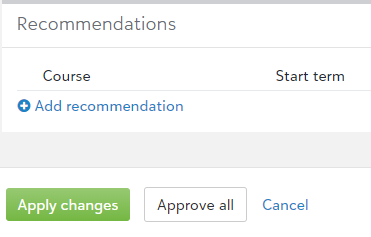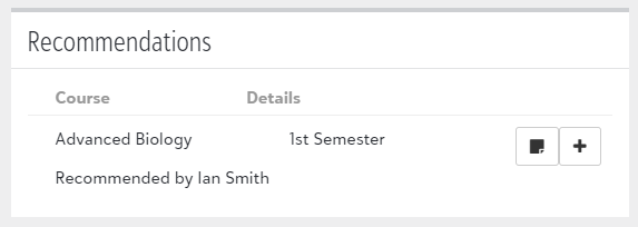 Step 3The student will then see the recommendation under Recommendations on their course requests page. If the student accepts the recommendation, then the recommendation is treated like a standard course request and therefore abides by the same prerequisite requirements, if applicable. | ![]() |