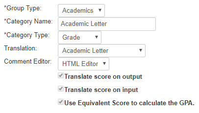 Grade Categories are used to determine how your Grade Translations appear on report cards. In addition, they allow teachers to add comments onto a progress report or report card.