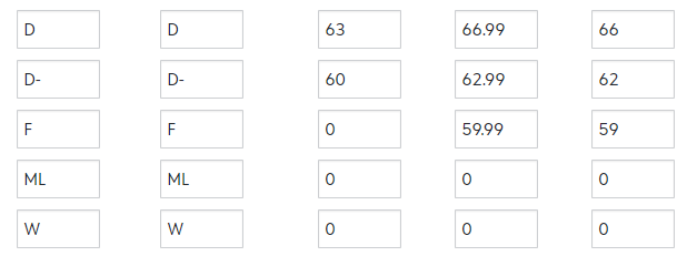When a student's grade average for a course falls between a specified range, then they can be awarded the respective grade. Otherwise, a teacher will be able to select the Grade Label. |