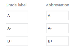 Academics > Grades > Grading setup > Grade translations Grade Translations are grades (such as A, B, C, D, or F) and the criteria associated with them for use in GPA calculations.