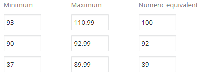 When a respective grade is awarded, both GPA Equivalent values can be used in a GPA calculation formula. |
