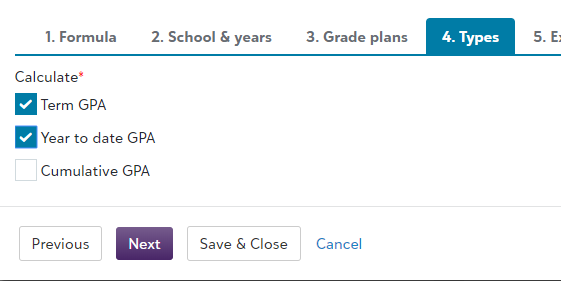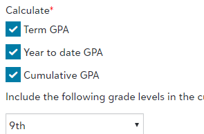 Select which GPAs you wish to calculate for. These options can appear on report cards and transcripts. |