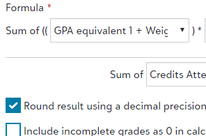A formula is an equation used to calculate grade point averages. The formula draws data from several different areas to perform this calculation. |