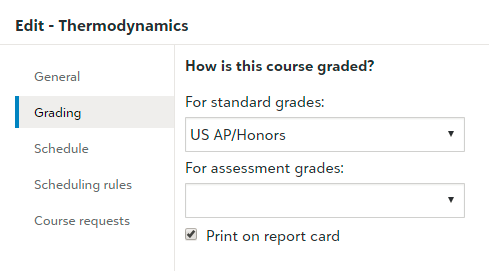 Courses rely on Grade Translations to determine what grade options are available and what those grade options equate to.