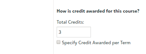 Step 2: Credit WorthDetermine how many credits should be awarded for completion of a course. If a course is year-long, and therefore spans more than one term, toggle Specify Credit Awarded per Term to award partial credit only if a different credit amount should be awarded each term. Credits must be specified every year in the Offer Courses task. |