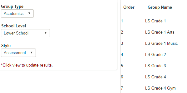 Grade Plan Groups are used to link courses with grade plans. A Grade Plan Group can contain several grade plans. Grade Plan Groups must either be defined as standard (typically used for letter/effort grades and comments) or assessment (typically used for skill-based grading and comments). Each class can be attached to one standard grade plan and one assessment grade plan if your school uses a hybrid report card. Create Grade Plan Groups based on the needs of courses. For example, if a set of courses require a different grading scale than a standard set (ex. AP/Honors), you would need to create Grade Plan Groups to accommodate for each course type. |