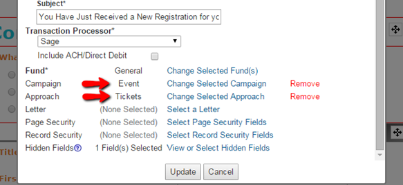 After configuring your general settings, you can start adding the Tickets field and other user defined fields you created so the donor can see them on the form. For more information, you can view videos on: