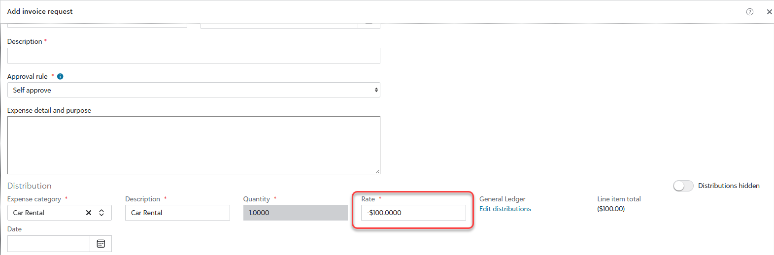 After you enter a description, select the approval rule, add a line item, then Edit details.