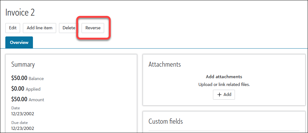 Note: You can't reverse an invoice with applications in web view. If the status is Posted, first unapply the application. You can then reverse the invoice to add the return.