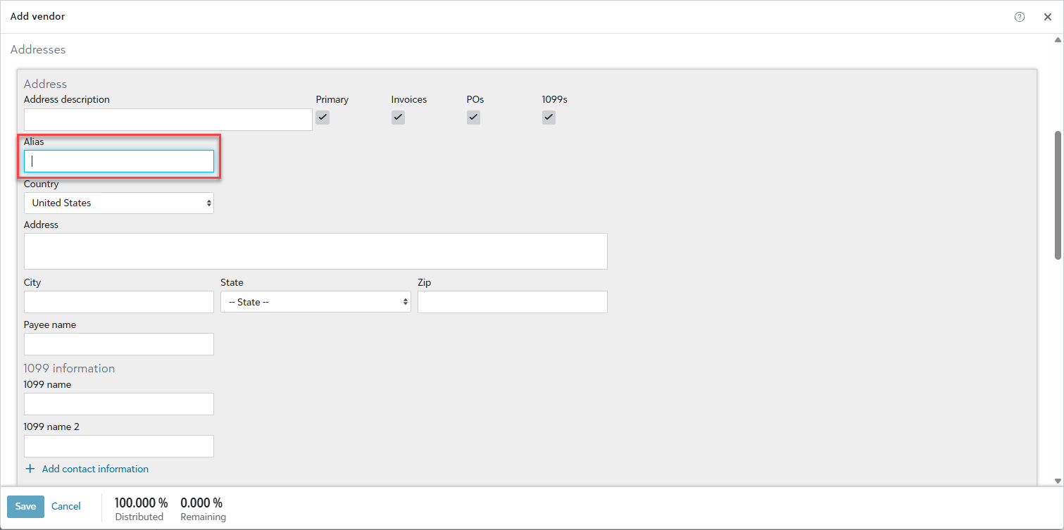Find vendors faster using alternate namesYou can now search for vendors using a vendor alias stored on the vendor’s primary address. This makes it easier to find vendor records when the name you know doesn’t exactly match the legal vendor name—helping you work faster and avoid duplicate vendor records.
