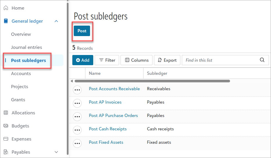 Post subledgers and reconcile a deposit to your general ledger in Financial Edge NXT.