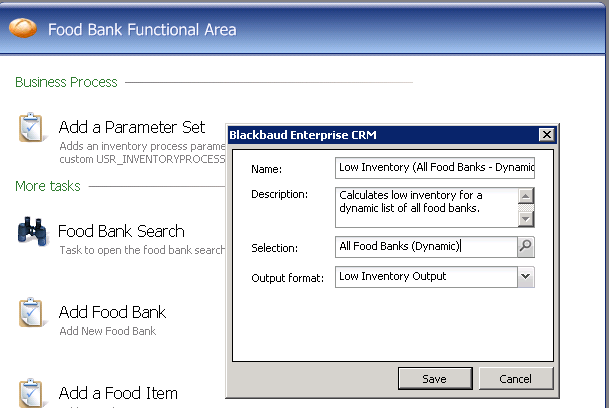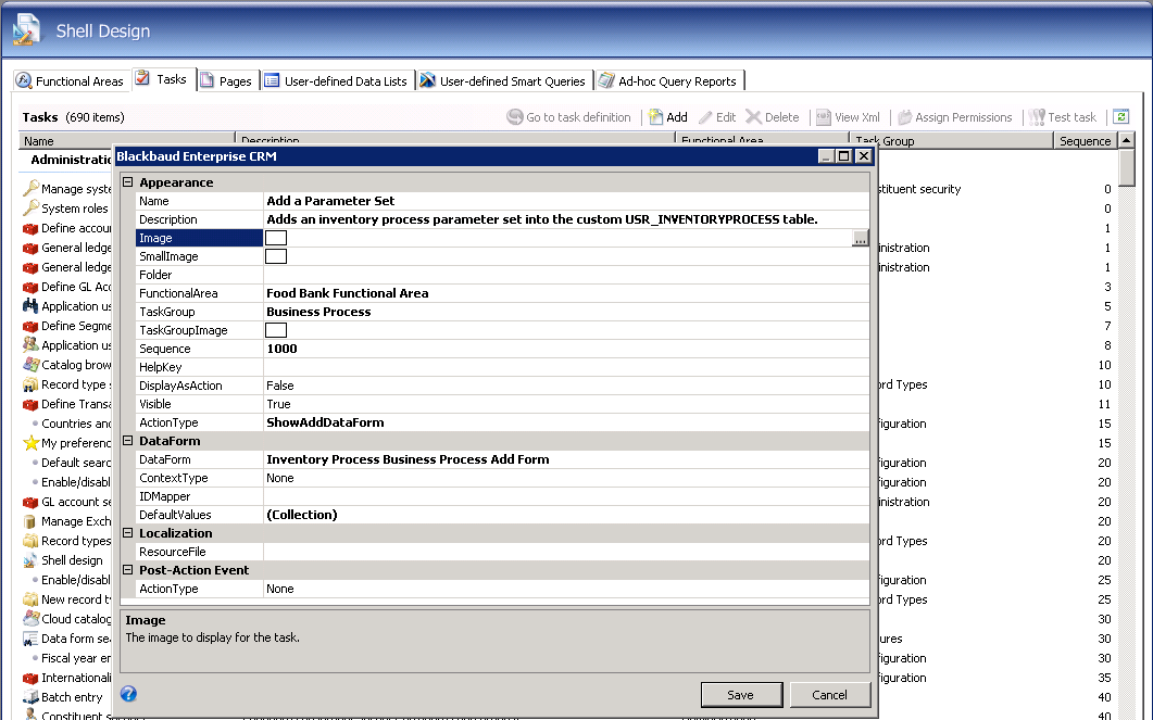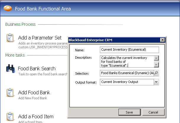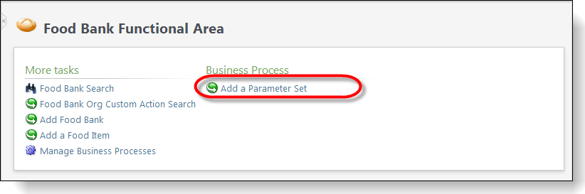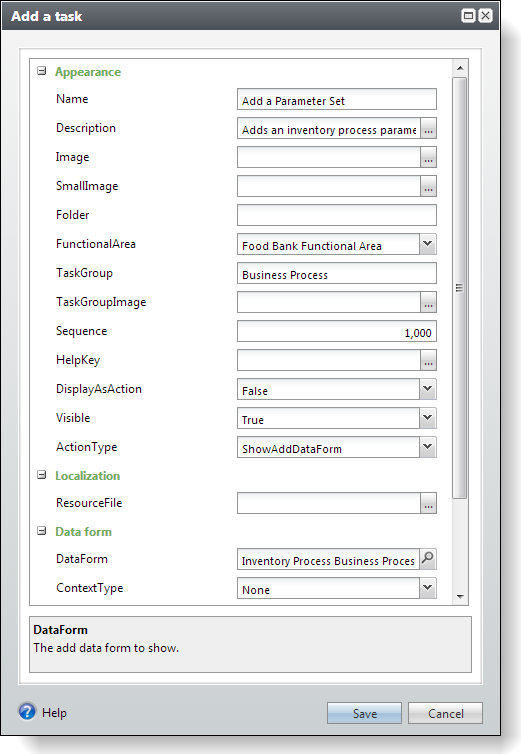 This creates a task within the Food Bank functional area to open our new Add Data Form.