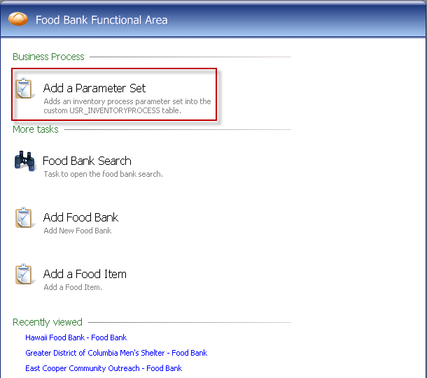 After the task is created, refresh the shell navigation to view the task within the Food Bank functional area.