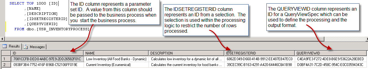 Open SQL Server Management Studio and create a SQL query to view the rows within the USR_INVENTORYPROCESS table.