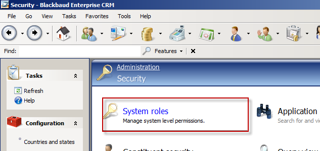 Click the Security task, and then on the Security page, click the System roles task.