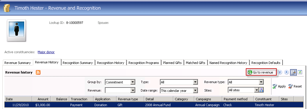 Select on the Constituent Revenue Information Page.