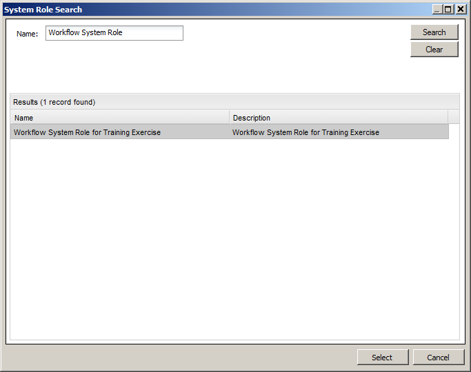 Select the system role named Workflow System Role for Training Exercise.