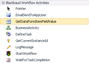 For an example of using the GetDataFormItemFieldValue workflow activity, see Exercise 6
