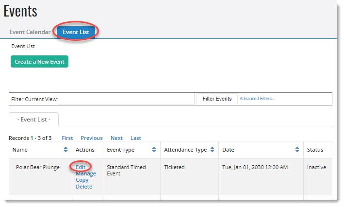 Note: You are now prompted to update additional event information. You may come back to update these settings at any time by selecting Edit in the Event List.