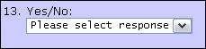 A Yes/No question displays with the question or statement above a drop-down list that contains Yes and No as the two possible answer selections and looks similar to the following.