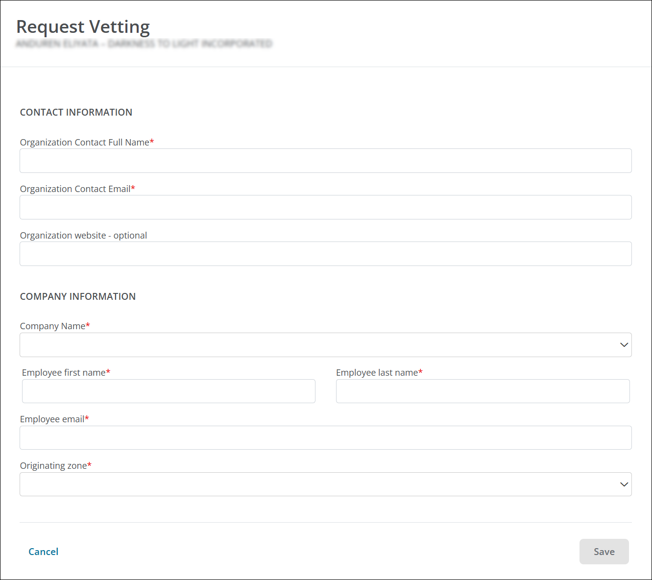 Vetting requests can be submitted by YourCause Admins either individually or in bulk.